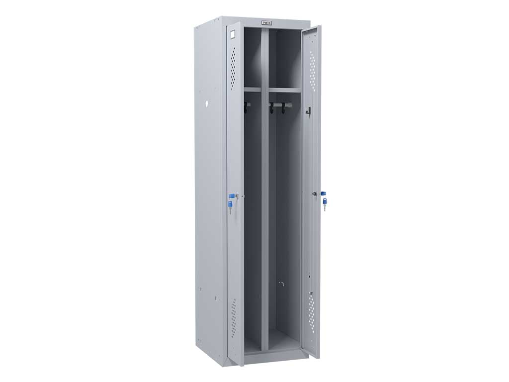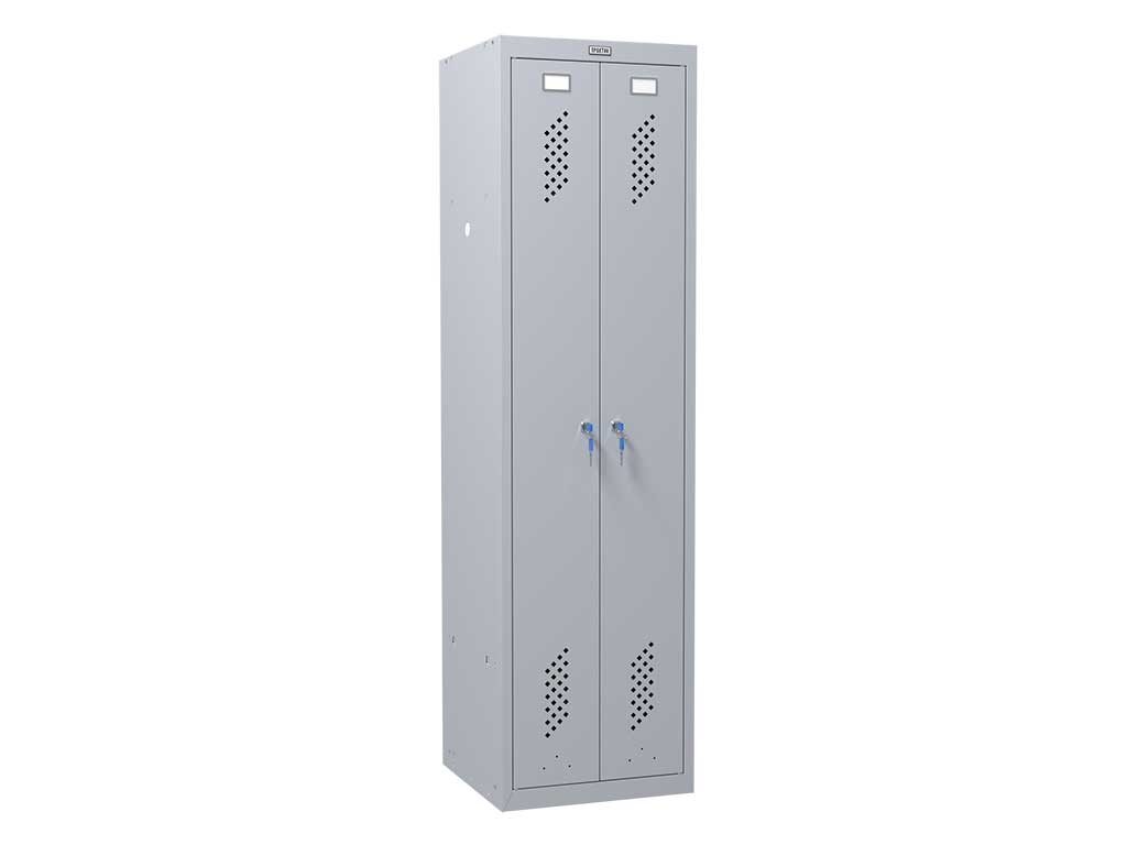 Прочная конструкция из металла с защитным покрытием не боится механических воздействий и коррозии. Такое изделие можно без опаски устанавливать в гардеробных производственных помещений, где повышен уровень влажности — прослужит долго. Размеры модели (высота, ширина, глубина): 1830×500×500 мм.