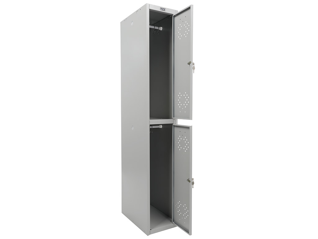 Прочная конструкция из металла с защитным покрытием не боится механических воздействий и коррозии. Такое изделие можно без опаски устанавливать в гардеробных производственных помещений, где повышен уровень влажности — прослужит долго. Размеры модели (высота, ширина, глубина): 1830×302×500 мм.