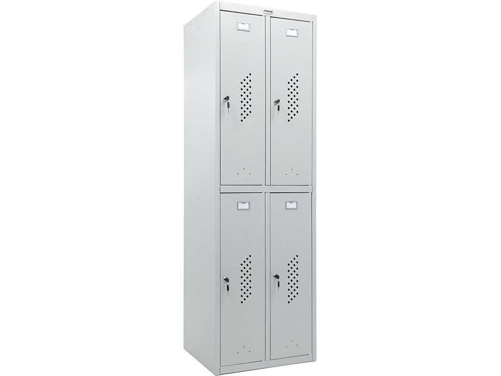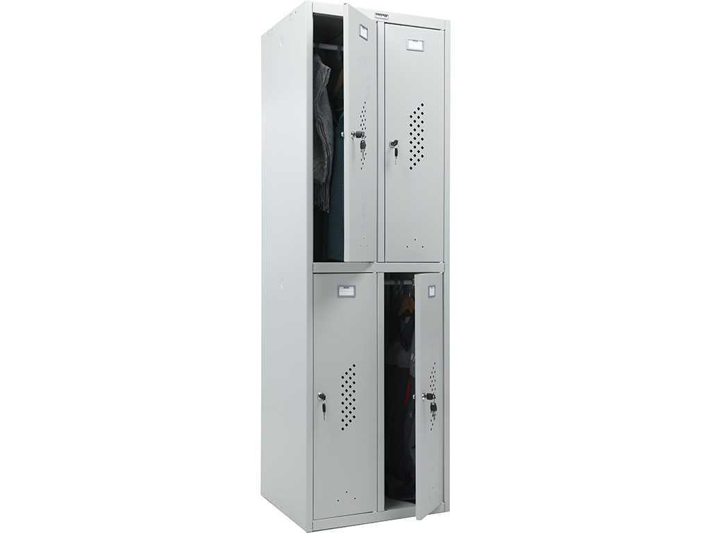 Прочная конструкция из металла с защитным покрытием не боится механических воздействий и коррозии. Такое изделие можно без опаски устанавливать в гардеробных производственных помещений, где повышен уровень влажности — прослужит долго. Размеры модели (высота, ширина, глубина): 1830×600×500 мм.